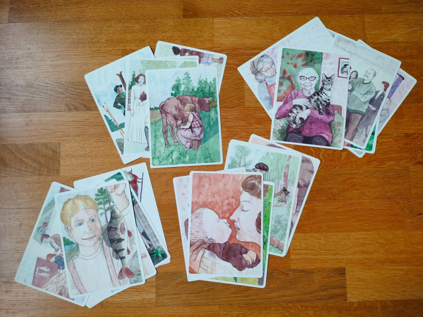 -24 käsinmaalattua, Suomessa painettua A5-kokoista korttia